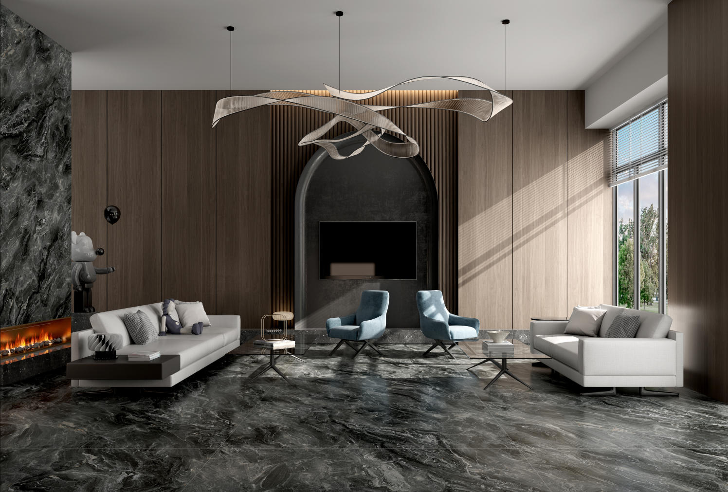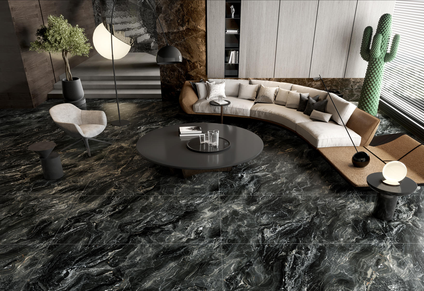 黑灰色調(diào)中蘊(yùn)藏的灰白紋路,極具個(gè)性與藝術(shù)美感,有著奇妙的視覺(jué)吸引力。低調(diào)成熟的氣質(zhì)頗具高級(jí)奢華的現(xiàn)代感,整體豐富的紋理,靜中見(jiàn)動(dòng),形成強(qiáng)烈的自然原始風(fēng)格。