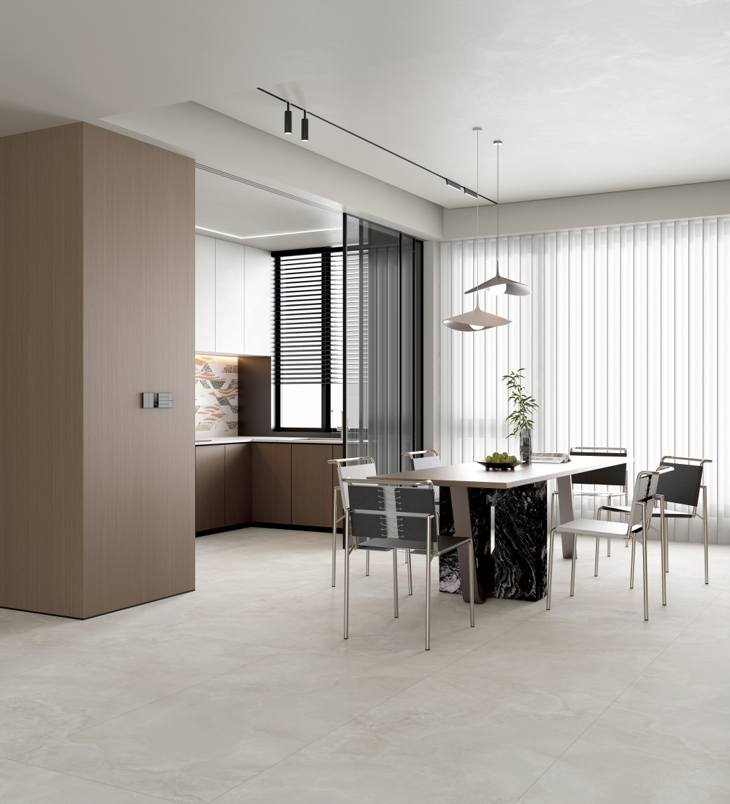 自然通透細(xì)膩,灰色線條、肆意飄散的紋理,深淺變化不一縱情延伸, 在空間里獨(dú)自綻放光彩,營(yíng)造了獨(dú)特隨性的空間氛圍。