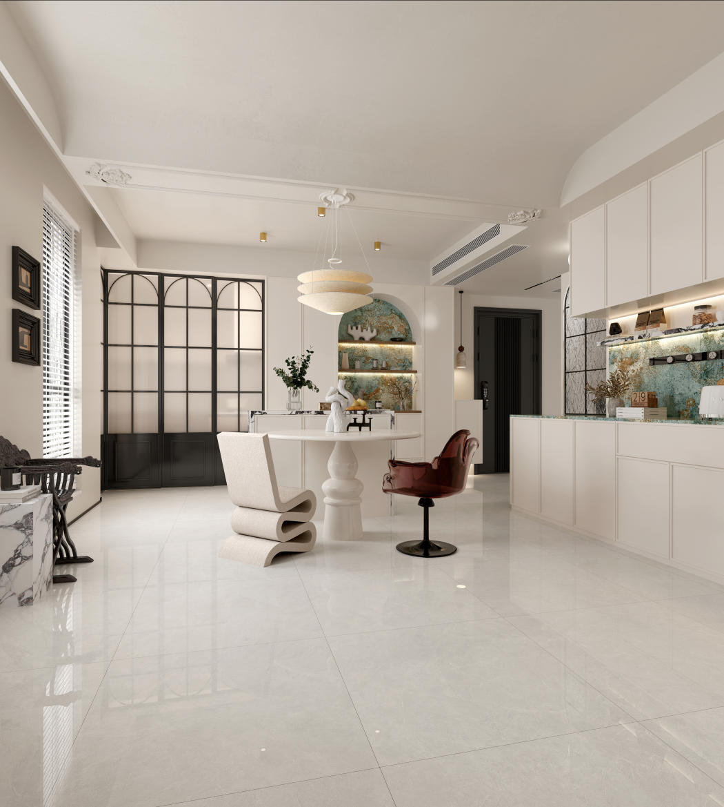 云絮飄動(dòng)似的微弱紋理,其間淺灰紋理若隱若現(xiàn),又如冬日山林雪徑,簡(jiǎn)約雅致,為空間注入清冷高級(jí)感,營(yíng)造寧?kù)o舒適的家居氛圍。