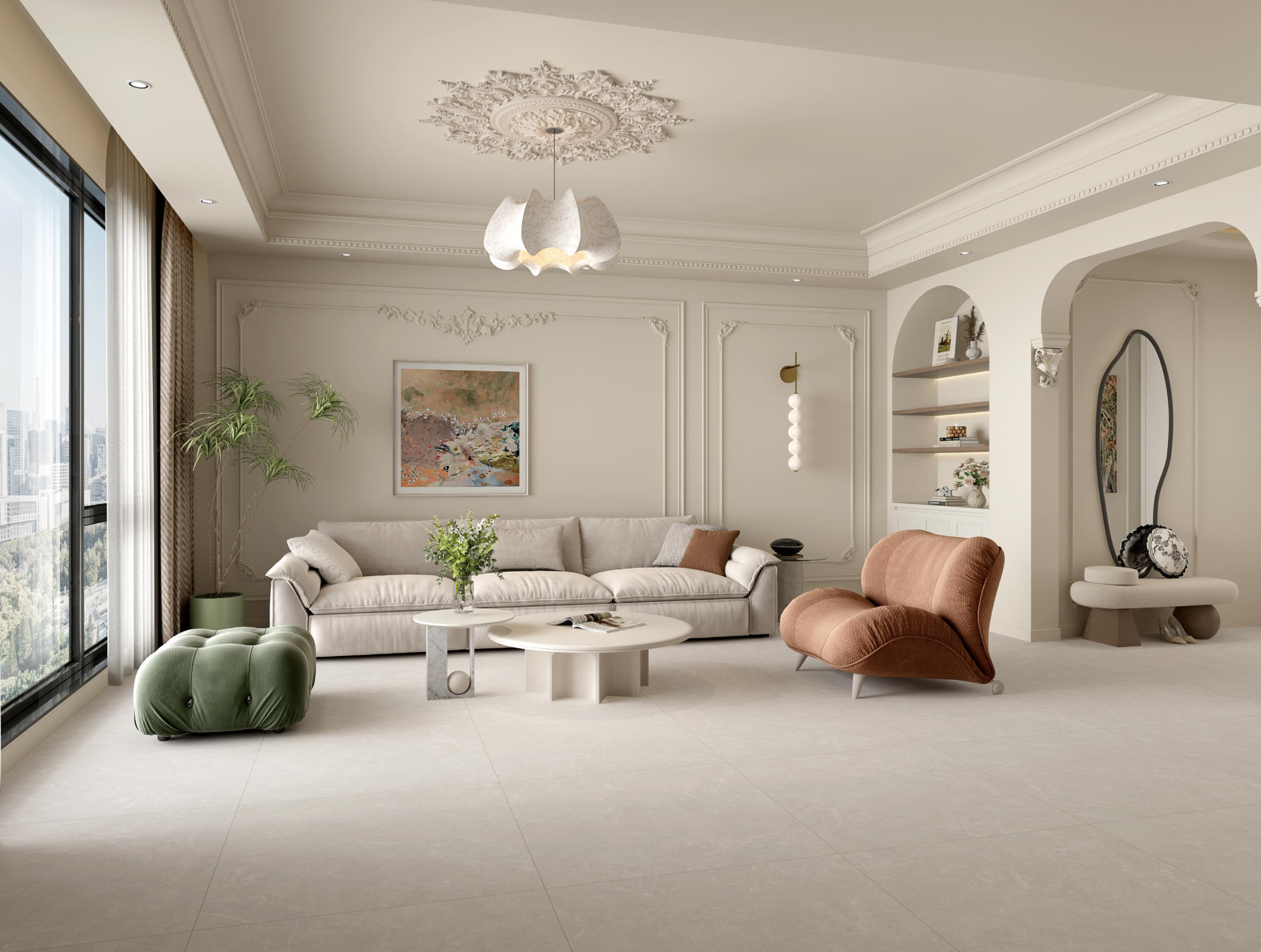 靈感來源于波爾圖大教堂的文化遺跡,質(zhì)感的灰色是歷史的見證,表面紋理簡約、悅目,悠然地展現(xiàn)出米灰的深沉與靜謐,記錄時(shí)光的流轉(zhuǎn),創(chuàng)造出一片獨(dú)特的空間奇跡。