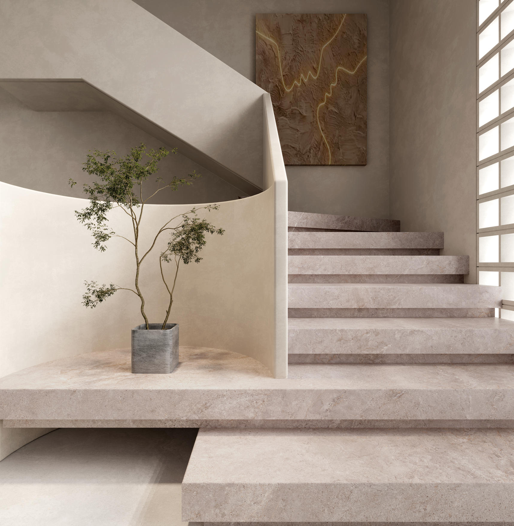 設(shè)計(jì)靈感源于對(duì)烏拉爾山脈自然基因的深刻解讀,冰川以千年時(shí)光雕琢山體,在巖石表面留下深淺不一的歲月痕跡,風(fēng)穿過(guò)松林,雪水漫過(guò)巖層,自然的力量與堅(jiān)韌,在這片土地上書(shū)寫(xiě)著永恒的史詩(shī)。紋理如俯瞰的山脈紋理,深灰、棕褐交織,似冰川蝕刻山體的的痕跡,將烏拉爾山峰的雄渾與神秘凝于材質(zhì)之上,把自然的磅礴與堅(jiān)韌融入生活空間。