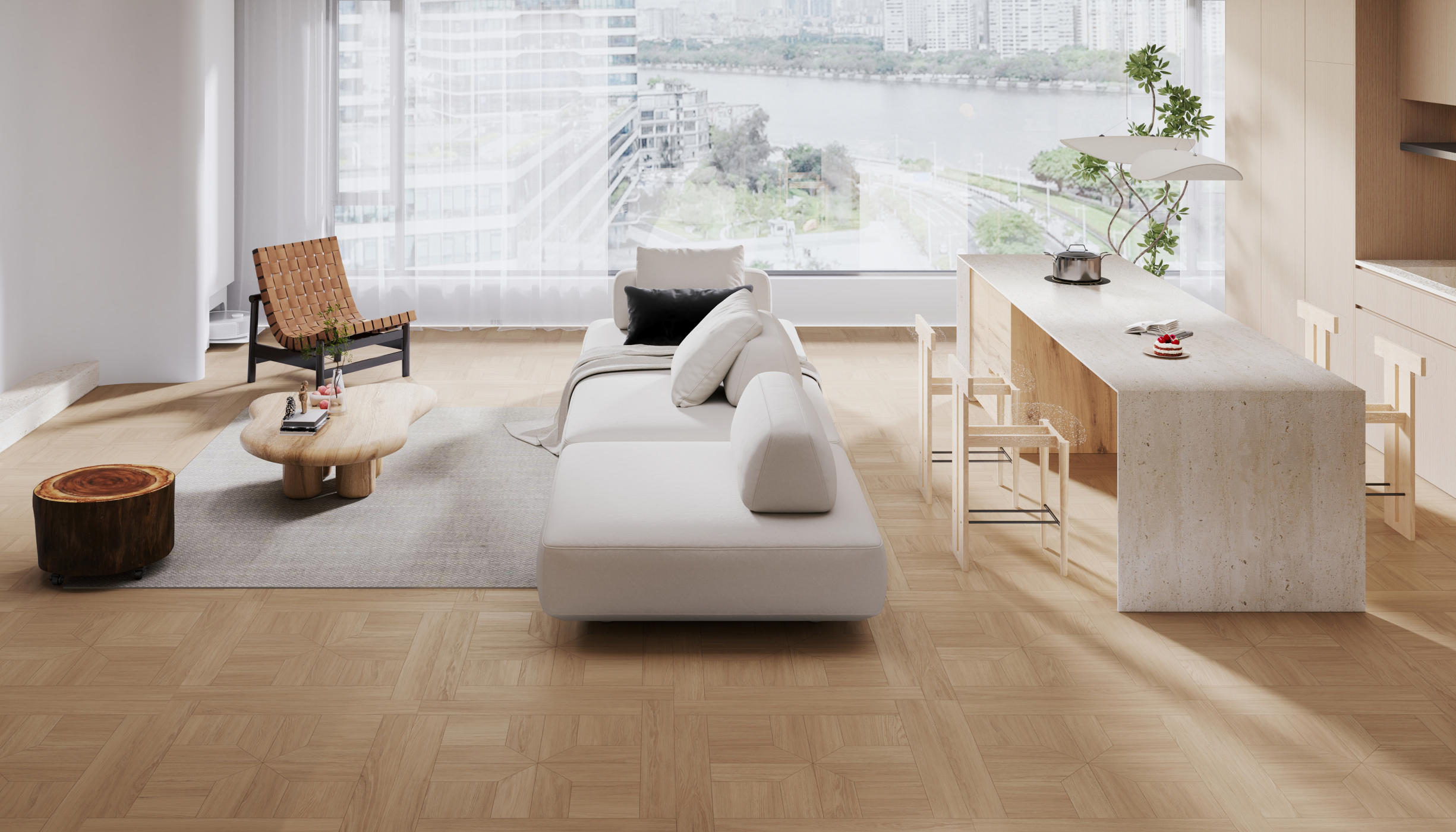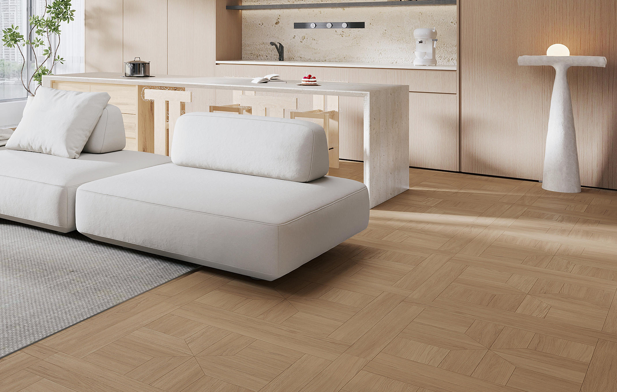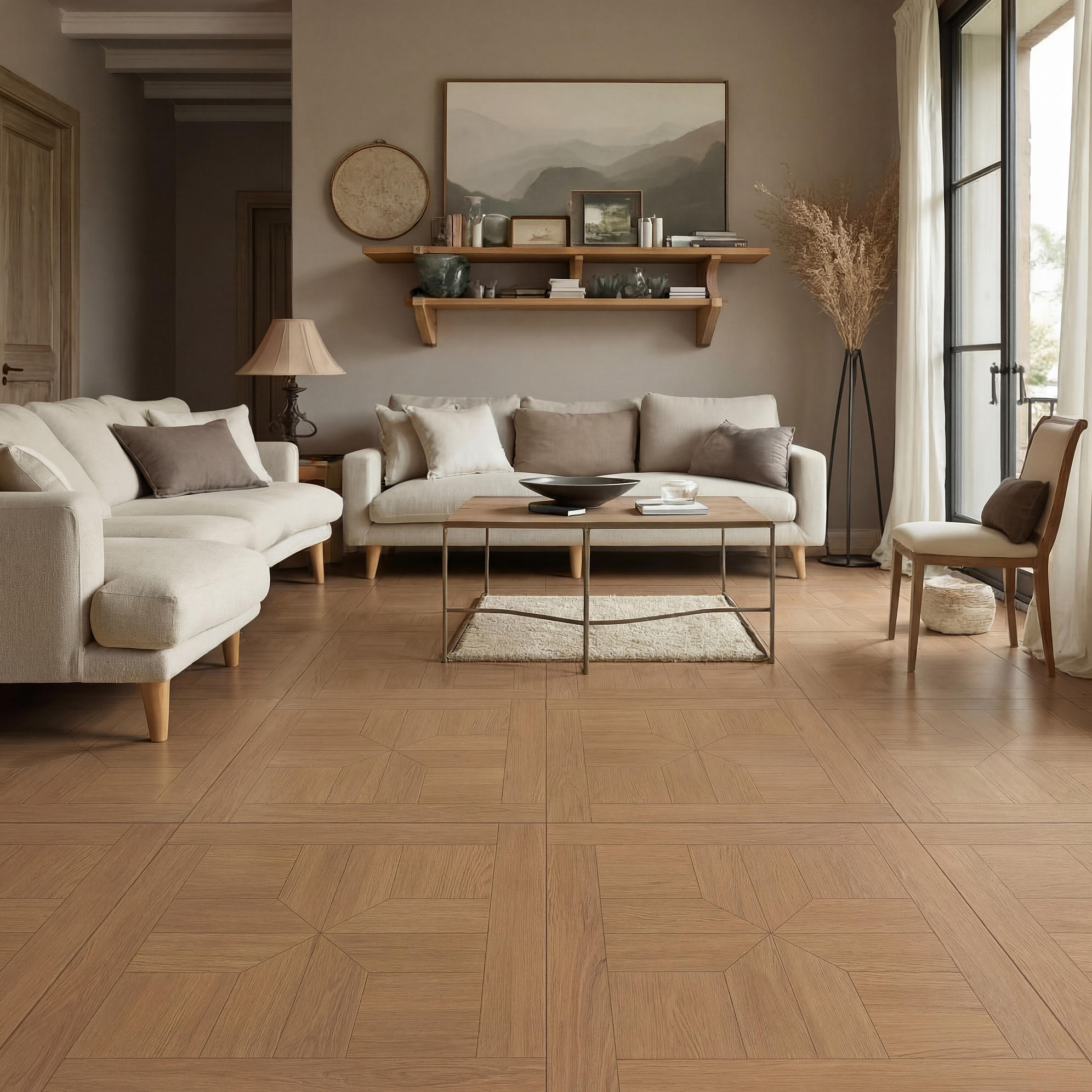 淺夏格調(diào)以萬字拼花為設(shè)計錨點,將幾何的秩序韻律,織入原生木色的溫柔肌理,打造讓空間有情緒、有質(zhì)感的生活載體,讓每一道木紋都承載著歲月沉甸甸鄂故事。