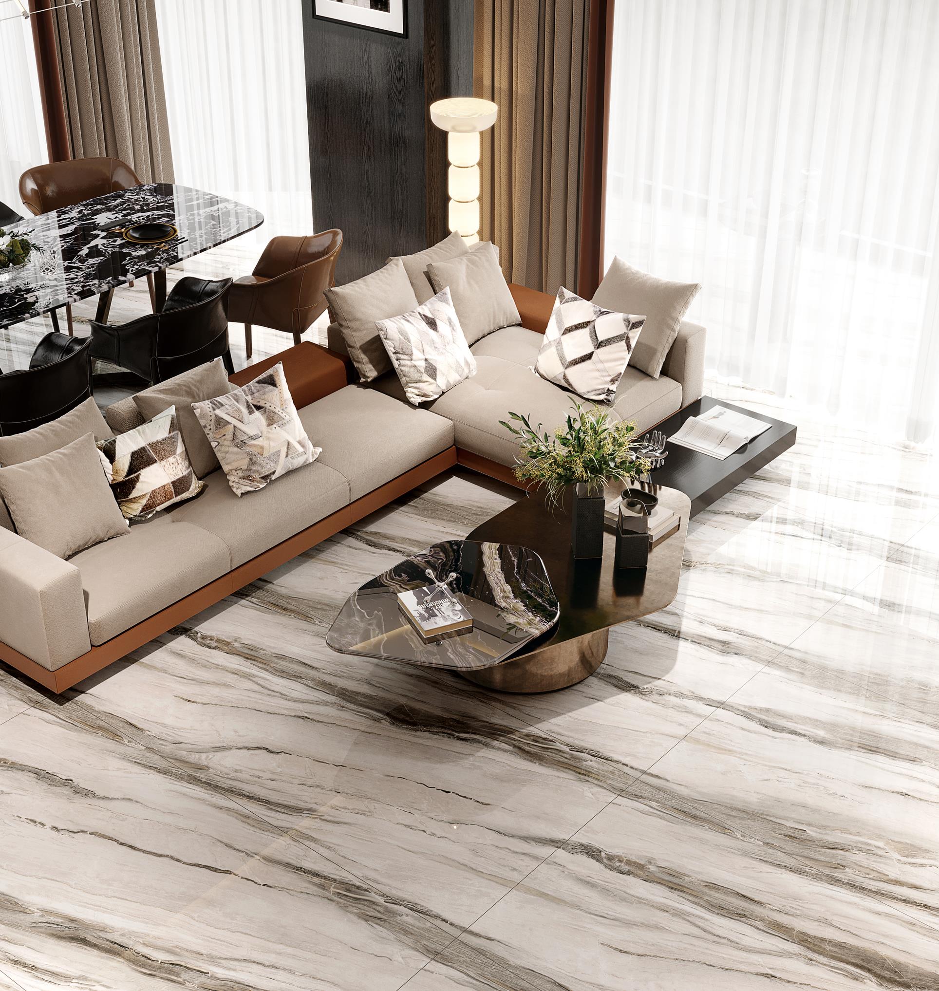 模仿在億年地殼運(yùn)功過(guò)程中形成的自然石紋,飽滿清晰、蜿蜒曲折,成不規(guī)則狀,每一條紋理都是獨(dú)一無(wú)二,其細(xì)膩逼真的紋理將再現(xiàn)又一個(gè)真“石”神話,與空間相得益彰,不經(jīng)相同的紋理流出絲絲縷縷的自然清新之感。(任意無(wú)限連紋)