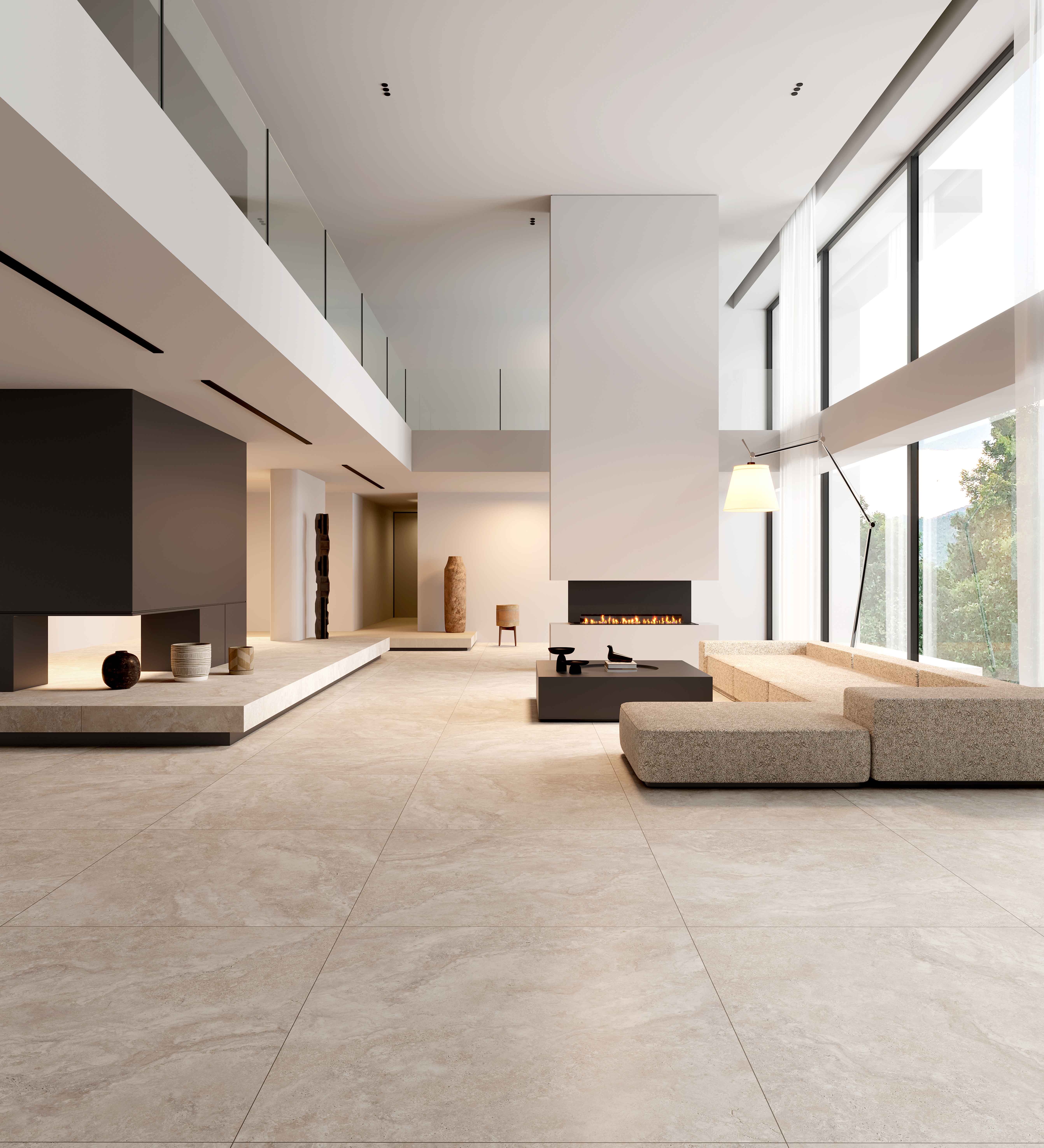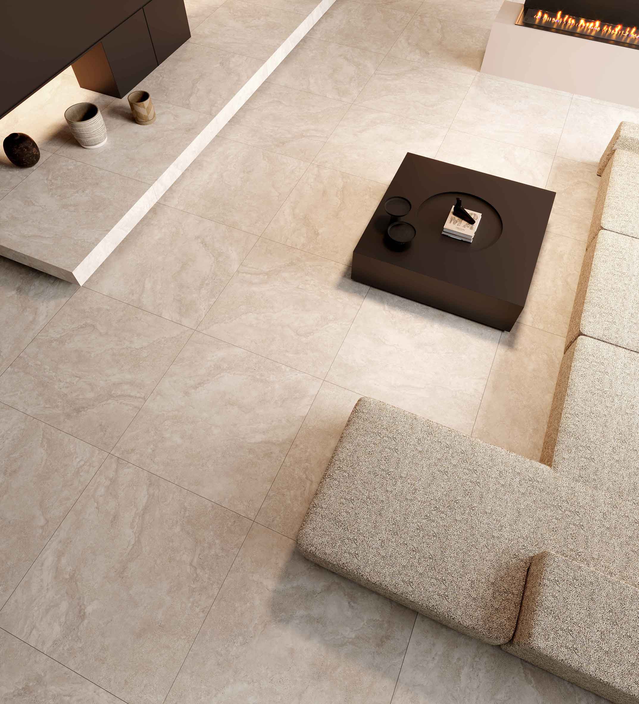 溯源億萬(wàn)年前波特蘭島的自然美學(xué)與歐洲建筑經(jīng)典美學(xué),復(fù)刻經(jīng)典洞石獨(dú)有的孔洞肌理,或張揚(yáng)、或粗狂、或熱情、或冷酷融合水泥斑駁的肌理質(zhì)感,打造出一種極具現(xiàn)代感和飽滿質(zhì)感的空間效果,讓人有回歸本質(zhì)與自然的感覺。