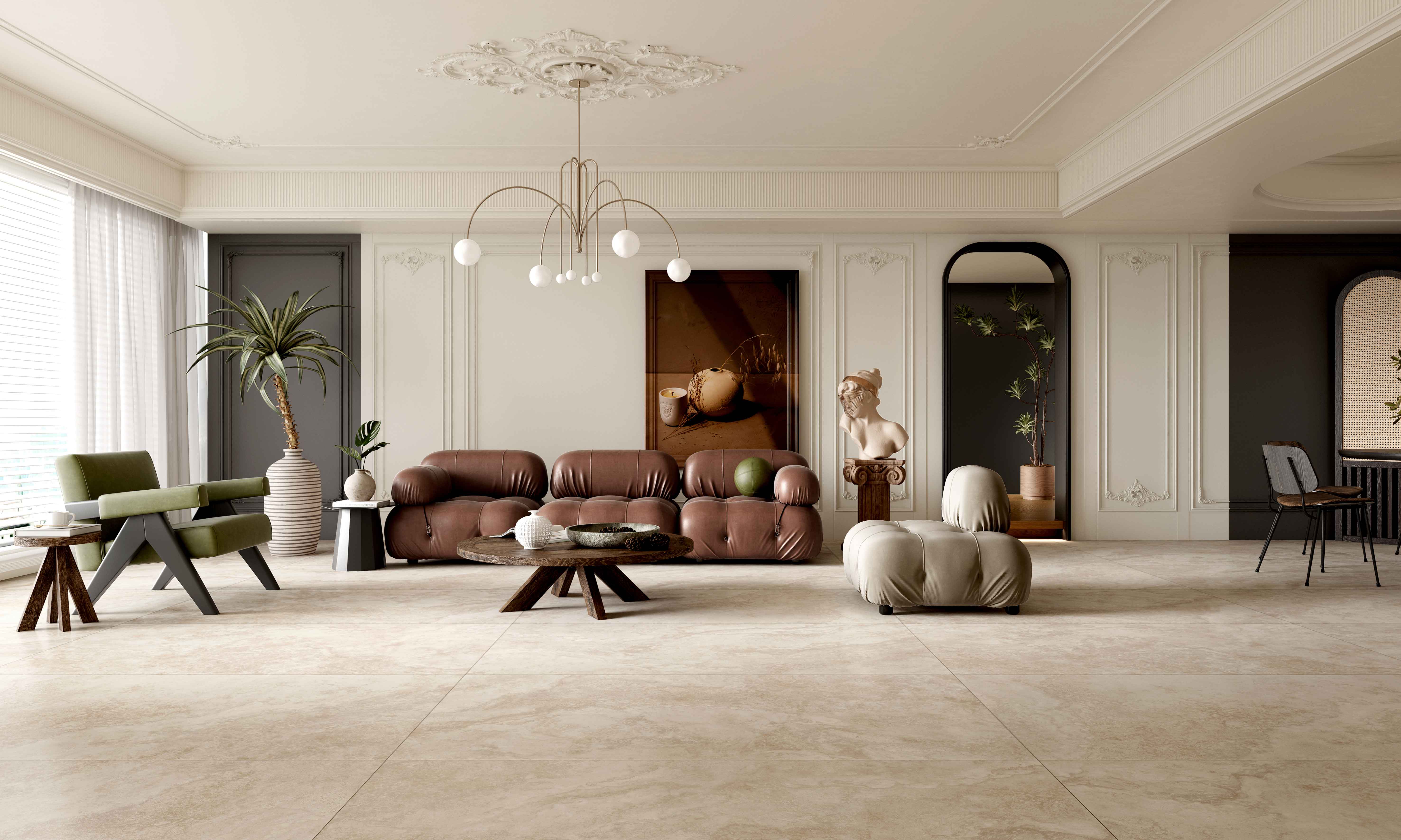 適用風格:該產品為子母配套磚,包含規(guī)格1200*1200mm/900*1800mm/750*1500mm;適用于現(xiàn)代簡約、奶油風、輕奢、新中式風格等