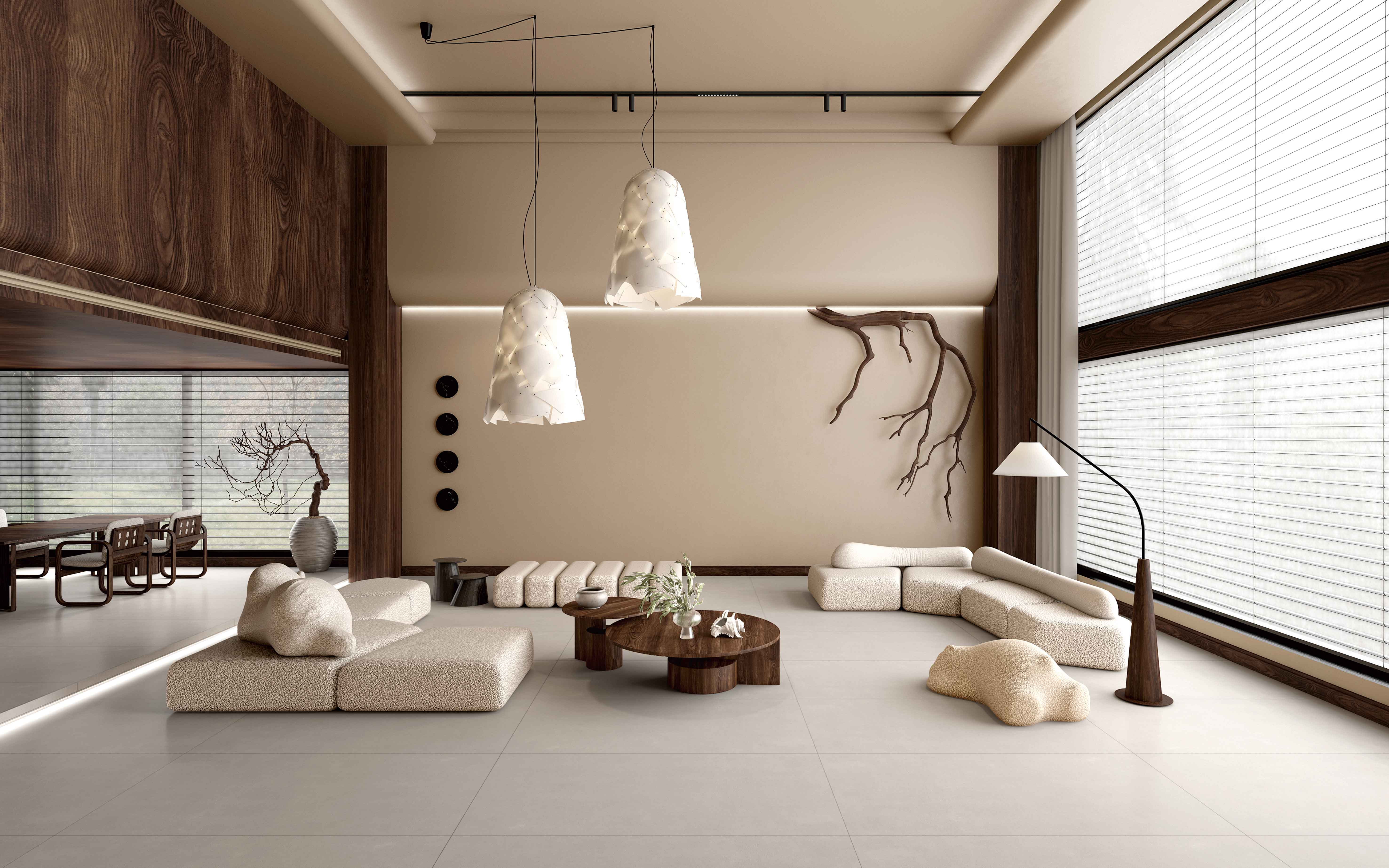 靈感源自化繁為簡(jiǎn)的素色水泥,延續(xù)低飽和度淺卡其色,柔和光澤點(diǎn)點(diǎn)于空間,還一室生活的藝術(shù)氛圍,讓空間有著獨(dú)特的質(zhì)感與寧靜感。