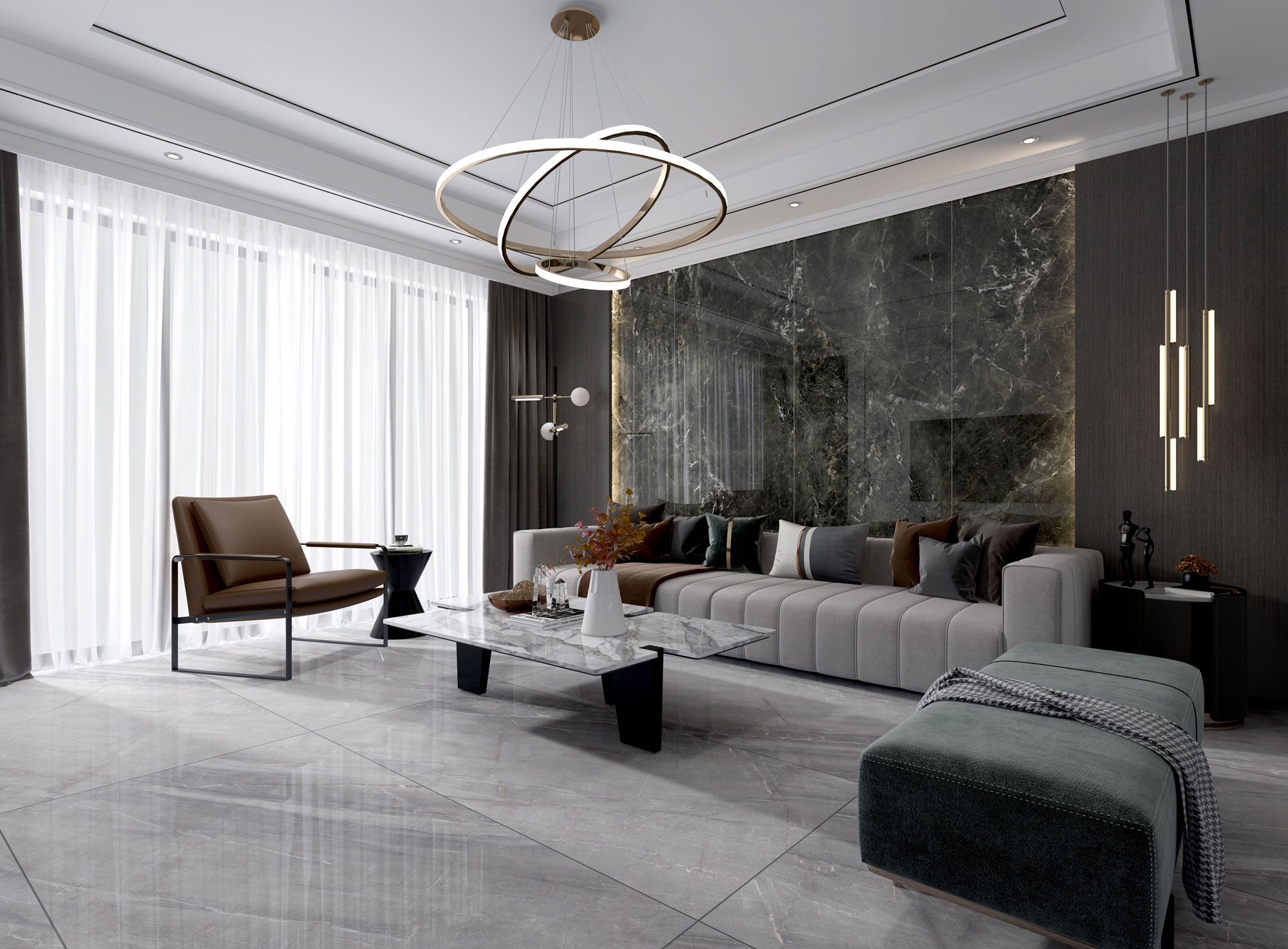 設(shè)計(jì)藍(lán)本源自意大利范特西石材藝術(shù),大塊的寫意灰,又有細(xì)節(jié)的勾勒與刻畫,演繹時(shí)尚家居藝術(shù)風(fēng)。